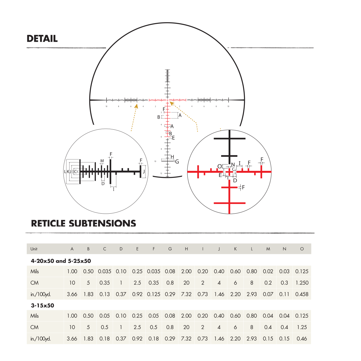 | Reticles: | G2B Mil-Dot™ (201053) SCR™ Mil (201051) SCR™ MOA (201052) SCR™ Mil (201056 (FDE)) SCR™ Mil (201054 (non-Illuminated)) |