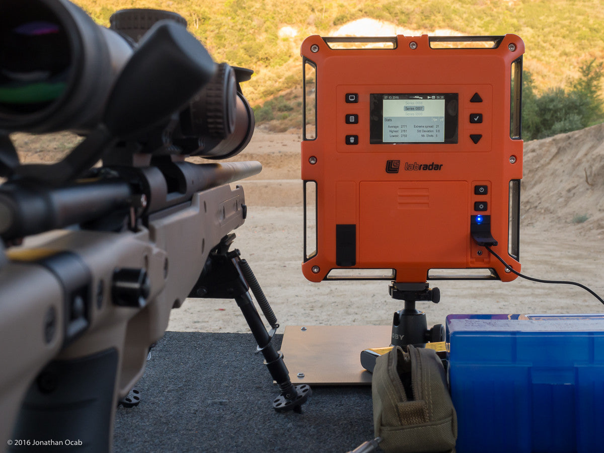 Labradar performance exceeds any consumer level velocity acquisition system. It continually measures velocities of your rifle, pistol, shotgun (slugs), arrows or pellets up to 100 meters depending upon the size of the bullet. Smaller bullets do not track as far as large bullets. Multiple distances for velocity display are user definable on the unit. LabRadar measures velocities up to 1190m/s with 0.1% accuracy using six AA batteries (or USB power bank). Labradar is not dependant on any light source and can be used indoors/outdoors in all weather conditions. It is positioned to the side of the weapon, not downrange where other systems are prone to damage. Each shot series provides Hi, Lo, Average, ES, SD. Individual shots display velocities at muzzle and up to five additional distances along with Kinetic Energy at each distance. The data is downloadable via USB or SD card. Built in IPSC / IDPA Power Factor Calculator. Mounts on standard ¼ x 20 tripod thread. (tripod not included). - Advanced tracking radar