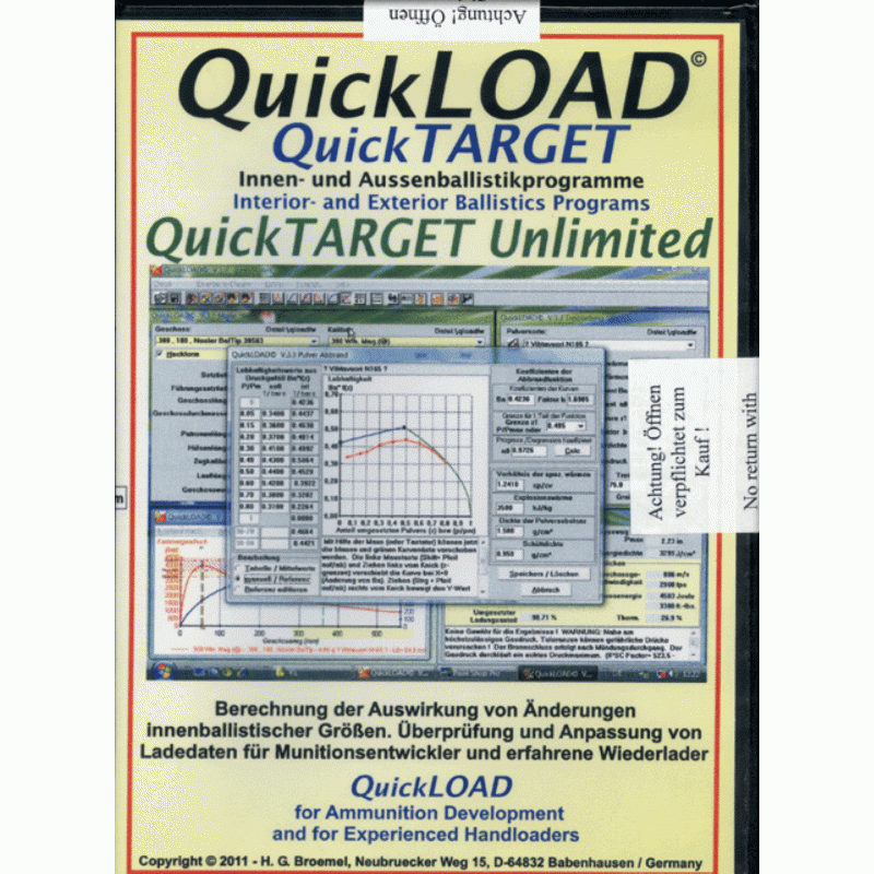 - QuickLoad-sisäballistiikkaohjelmisto omien jälleenlatausten simuloimiseen.
