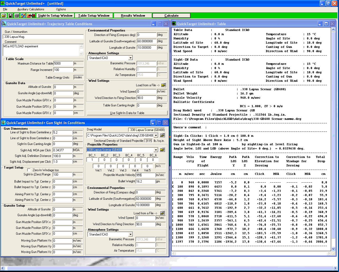 - QTU mahdollistaa erittäin tarkan lentoratalaskennan pitkille matkoille, kun käytetään luotikohtaisia ilmanvastuskertoimia, joita mm. Nammo Lapua Oy on julkaissut luodeilleen. (Ns. "tutkadata")