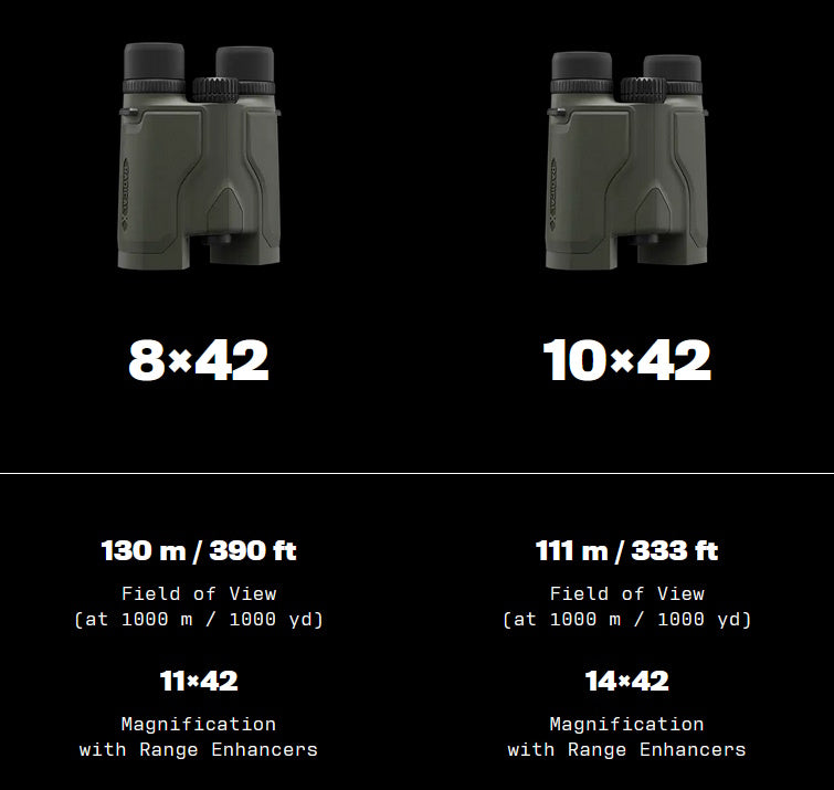 - Optional range enhancers: Boost your magnification up to 14x to get into spotting scope territory while maintaining stereoscopic view