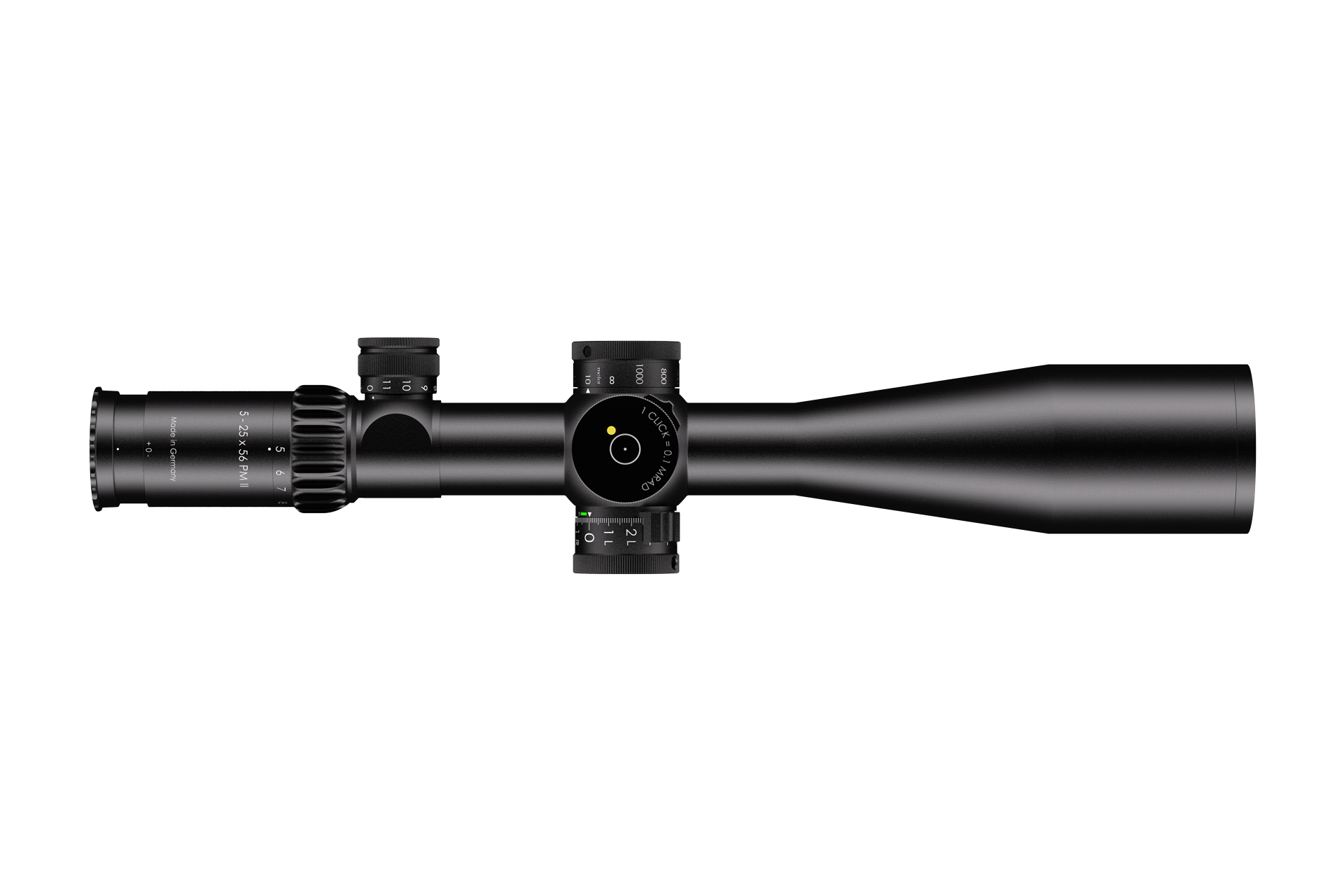 Optically, it has been the gold standard among 5-25x56 scopes for almost two decades now. The parallax can be precisely adjusted from 10 meter. The high-performance design of the 5-25x56 PM II is being continuously developed. The new magnification adjustment is made of high-quality aluminum and is compatible with the ‘Throw Lever’. The metal eyepiece end ring with internal thread is used for attaching accessories, offers easy-grip diopter adjustment and allows the high-quality Tenebraex flip covers to be fitted.