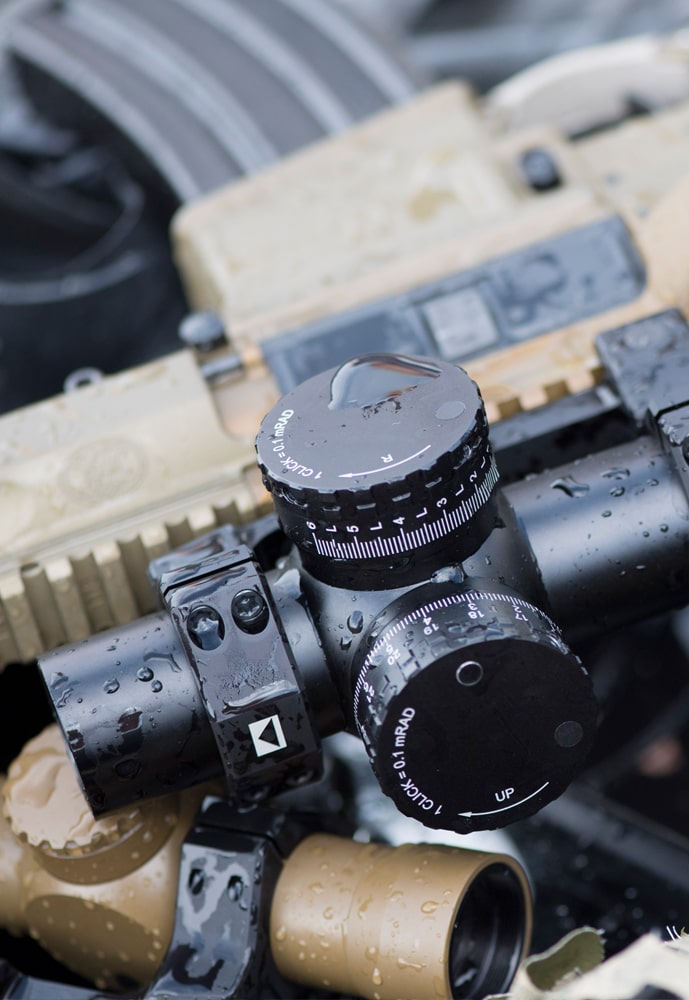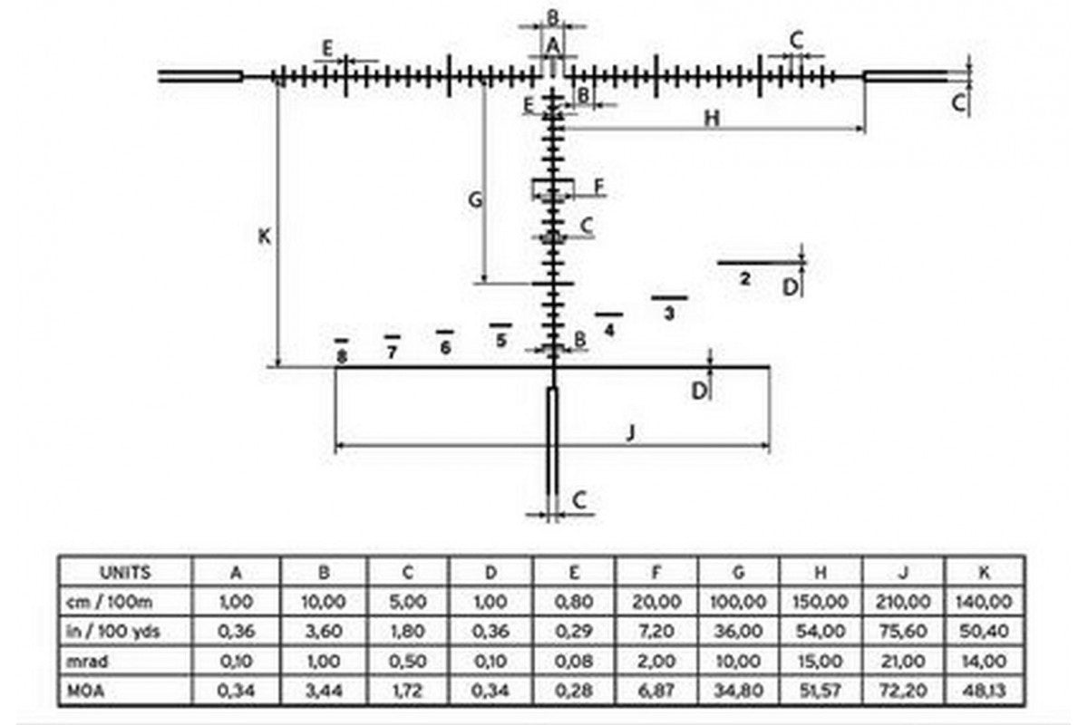 8x suurennoskerroin antaa käyttäjälle enemmän mahdollisuuksia - toimivuutta lähitilaiteista pidemmillekin matkoille. 1x suurennoksen avara näkymä kirkkaalla punapisteella on nopea, 8x suurennos tuo tarkkuutta pidemmillekin matkoille. Ristikko on milliradiaaninen, kalibroituna 8x suurennokselle.