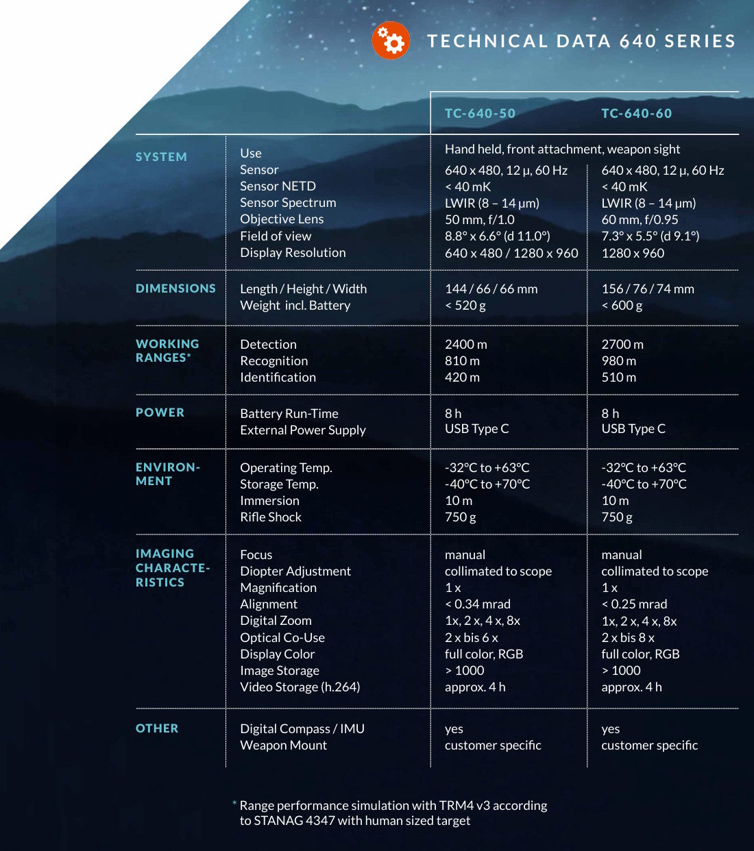 - Detection range up 2700m / STANAG 4347, human size object