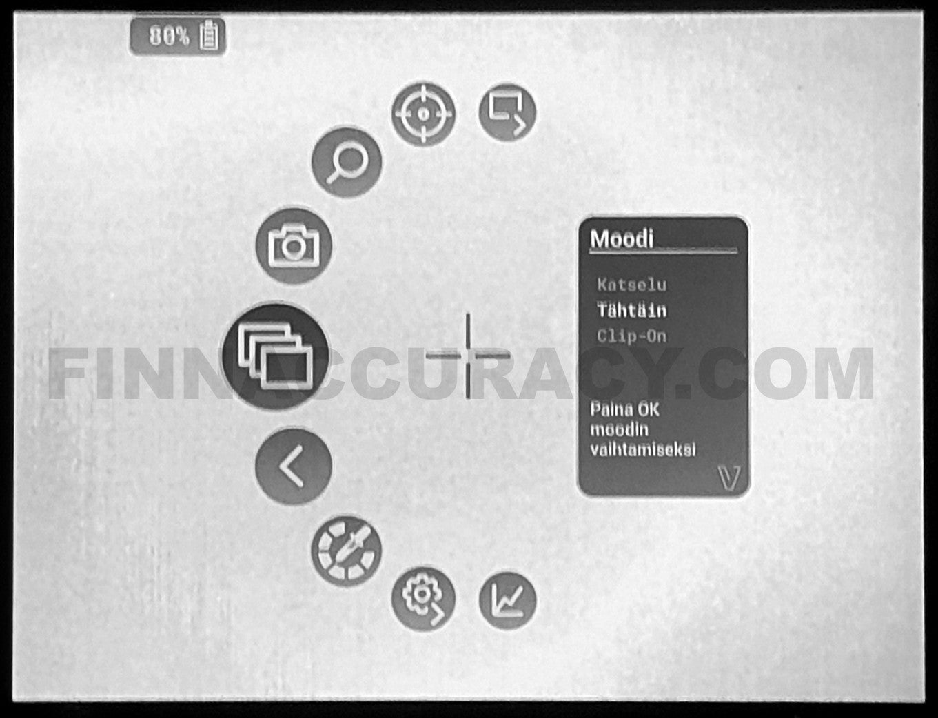- Ammattilaiskäyttäjien suunnittelema uniikki menurakenne: välitön ampuminen mahdollista vaikka menu avattuna näkökentässä. Saatavana Suomenkielisenä (erikoistilaus)